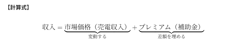 FIP制度では、事業者が受け取る収入は「市場で売ったお金」と「国からもらえる補助金(プレミアム)」の合計になります。
