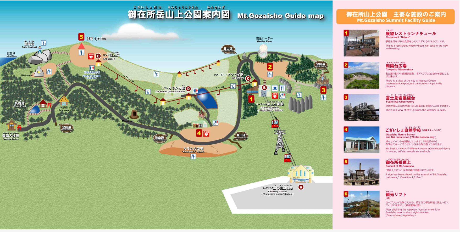 • 御在所ロープウエイ駐車場: 有料(乗用車 1,000円)。ロープウェイ乗り場のすぐ横にあり、観光に最も便利です(約300台)。