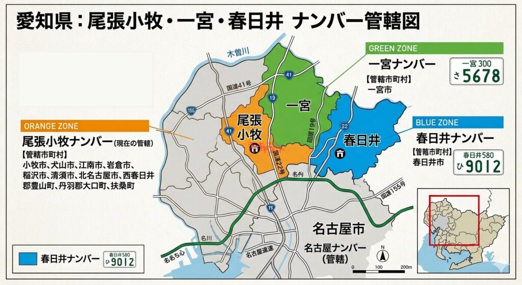 もともと「春日井」と「一宮」は、「尾張小牧」ナンバーから分割されたご当地ナンバーです。