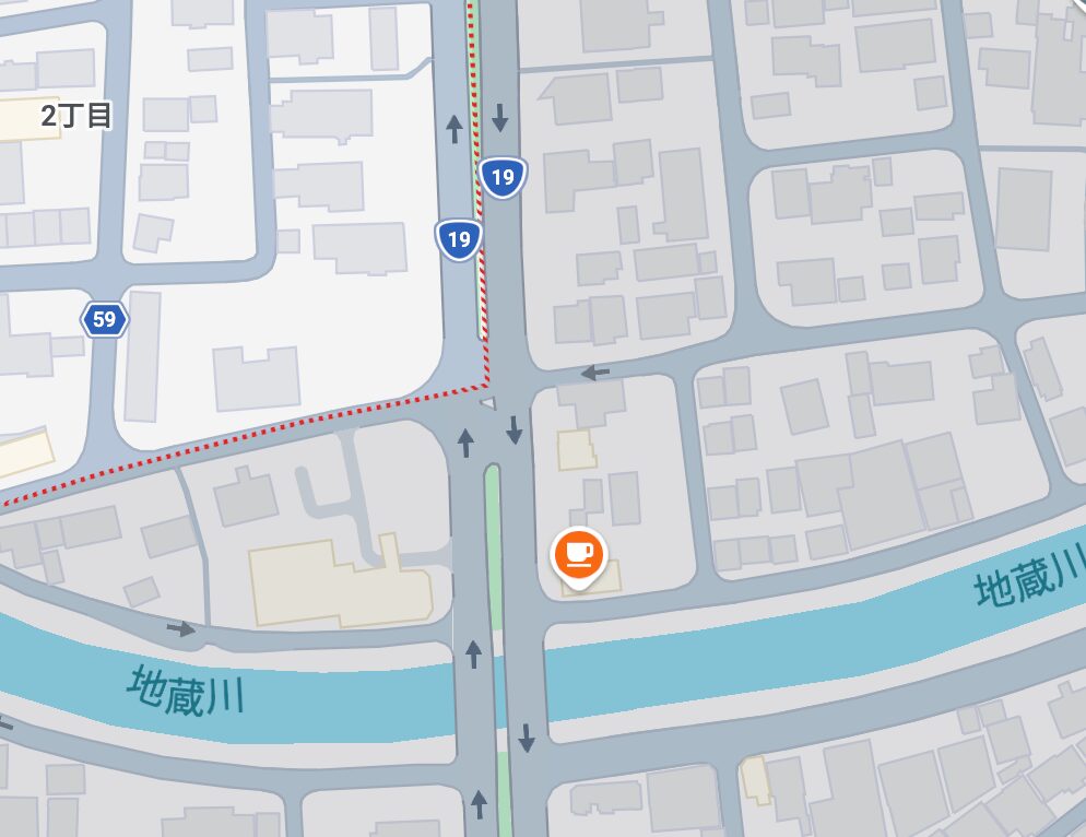 大型トラックの交通量が非常に多く、制動距離の差による追突や、巻き込み事故に注意が必要です。