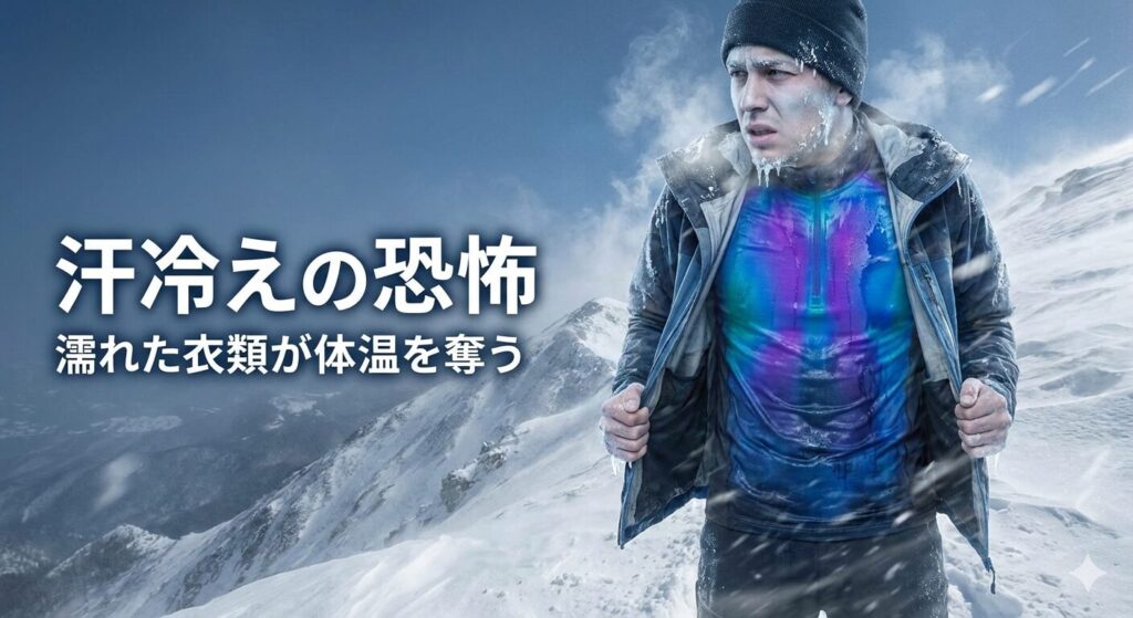 登山において「ヒートテックを避けるべき」と言われる最大の理由は、「汗冷え(あせびえ)」による低体温症のリスクがあるからです。