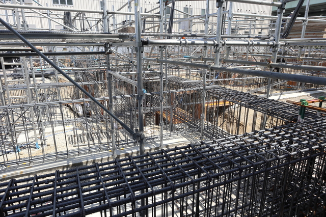 この施工では、まず鋼材やコンクリートで柱を立て、その上に梁を配置します。続いて、床板をその梁の上に敷き詰めていきます。この際、鉄筋を使った補強も行われるため、非常に強固な構造が完成します。