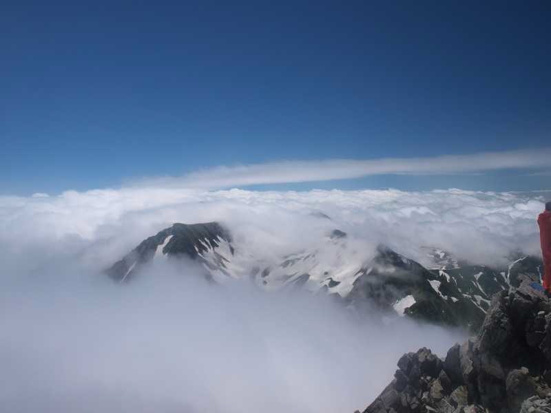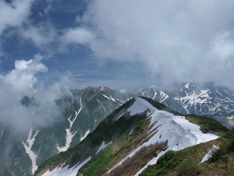 私にとって劒という山はいつも天気が良くないイメージです。大山もそうですが、山に嫌われているのかと思ったりしますが・・・いいえ、実はここに最高のチャンスが潜んでいるのです。やっぱりこの湧き上がる雲の風景は美しいと思いませんか。これぞ劒です。