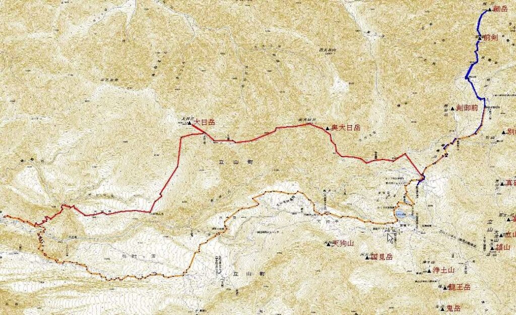 称名滝駐車場 ~大日岳登山口 ~猿ヶ馬場~牛ノ首~大日平山荘~大日小屋着 七福園 ~奥大日岳(2605.9)~新室堂乗越 ~雷鳥沢キャンプ 場