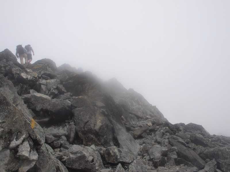 写真を撮れたのはホンの僅かな時間で下り始めた頃にはご覧の通りです。名物カニのヨコバイ 天気は悪いし 周りに誰もいないし怖さも急上昇です