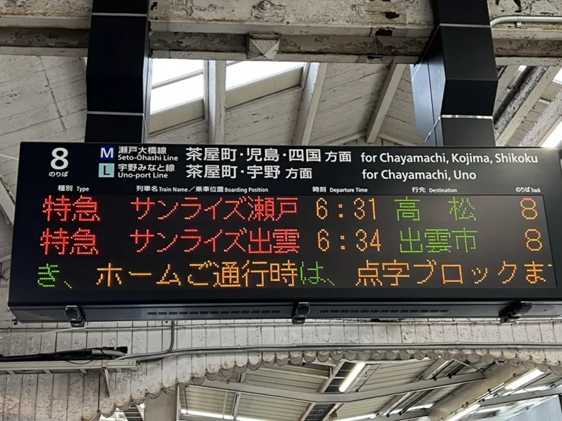 高松行と出雲行きが岡山駅で切離しされます。