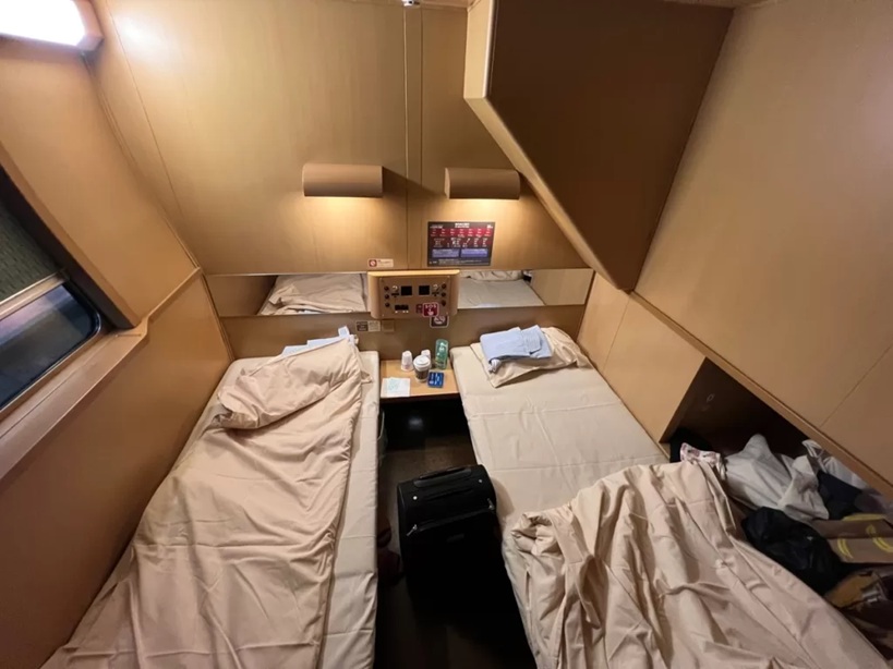 寝台車には個室からカプセルホテルのような